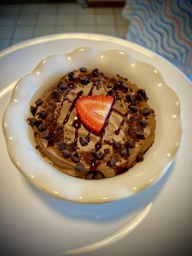 Decorating and flavor toppings are one of my favorite parts of assembling the mousse. I used a combination of shaved chocolate, mini chocolate chips, date syrup, and strawberries. You really can’t go wrong with mousse toppings and the classic whip cream and fresh fruit is always an excellent pairing. My personal favorite is extra chocolate syrup and crushed nuts. Do you have a favorite topping? Share in the comments below.