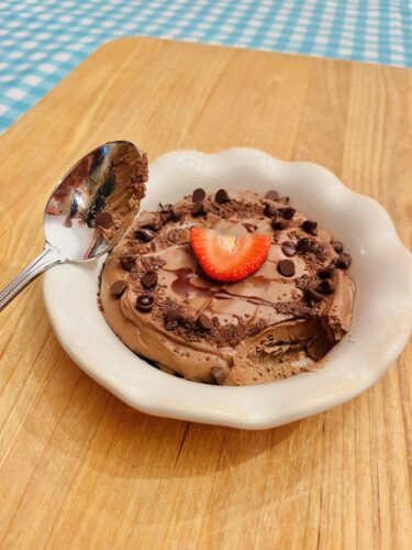 A creamy rich chocolate dessert made in under 10 minutes made with gluten and dairy free ingredients.Secretly healthy and protein packed with 10 grams protein per serving.