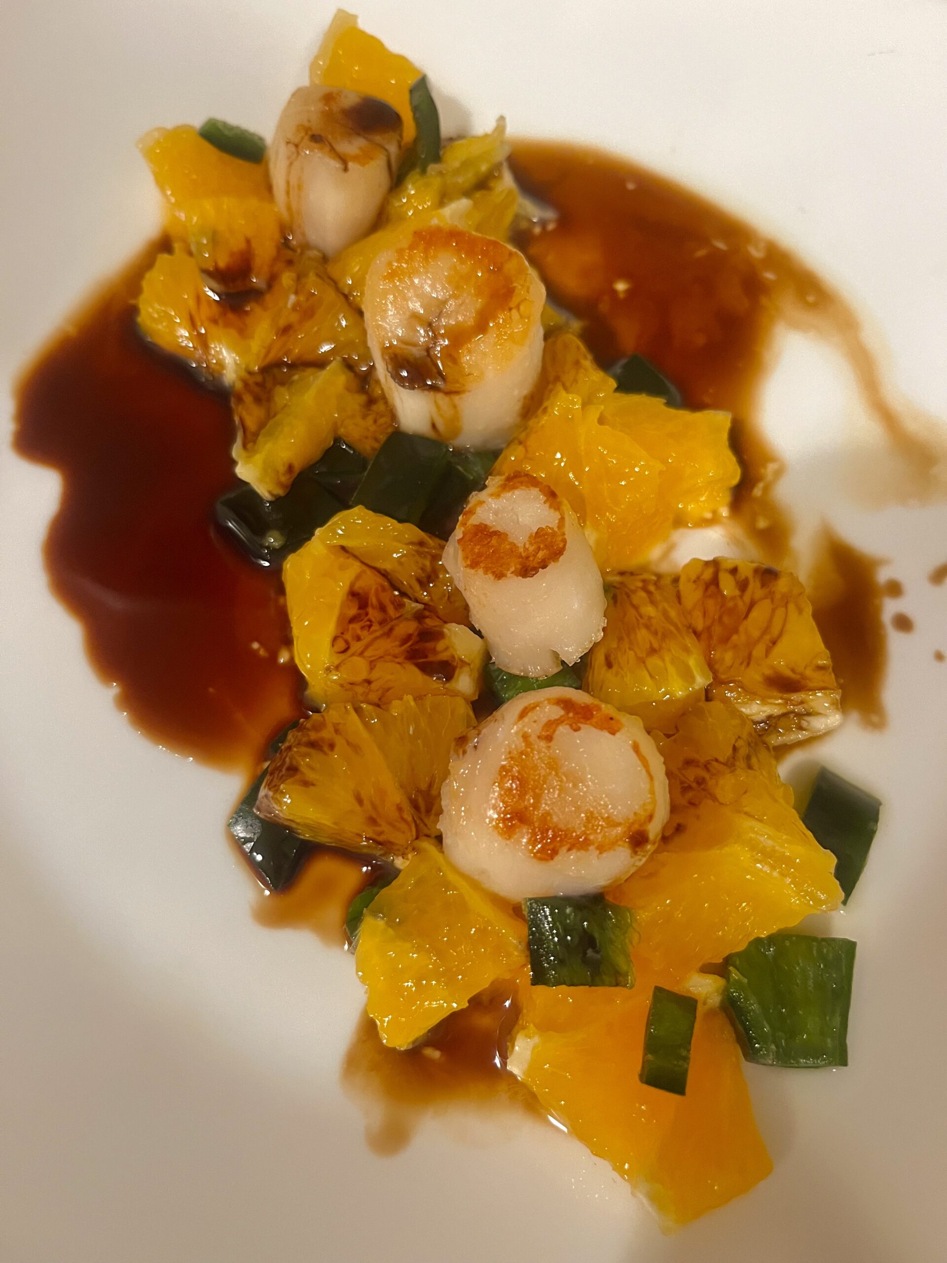 Tender juicy scallops with the perfect balance of salty and sweet over a refreshing citrus salad.