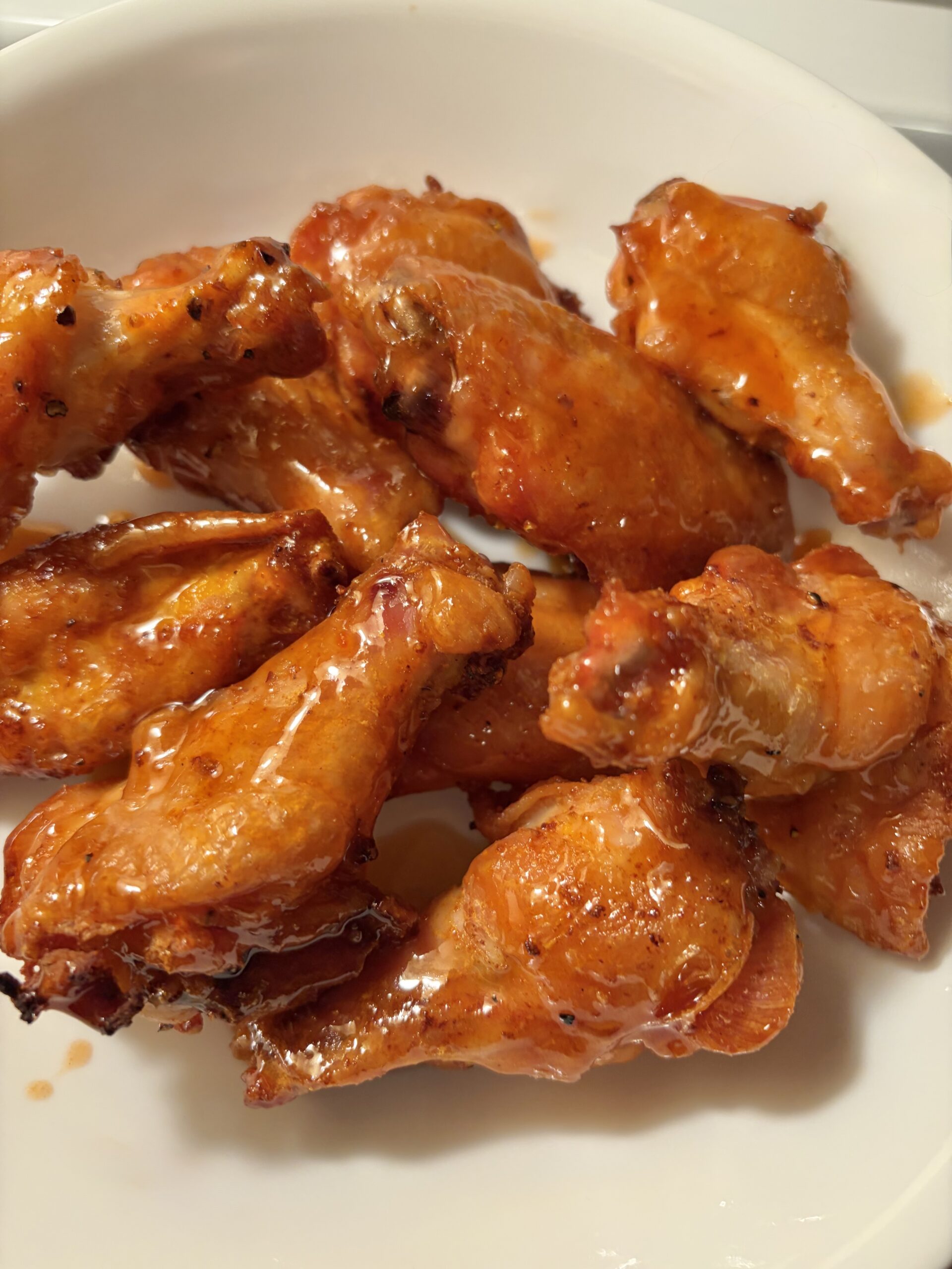 Once wings reach 170F, remove wings from the oven and serve as a plan or toss in my sweet spicy wings sauce.