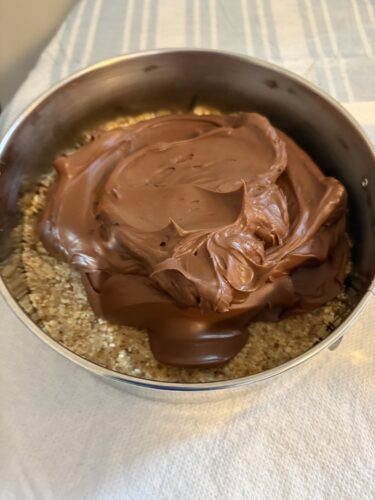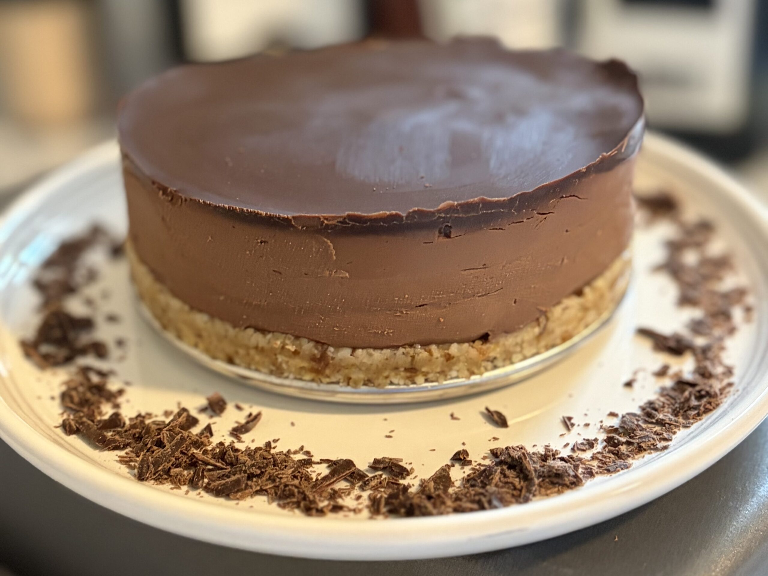 At this point you can top with melted chocolate ganache. Simply microwave coconut and chocolate for a few minutes stirring every 30 seconds until melted. Pour over mousse filling. You can also top with whip cream or fresh berries for a lighter version. You can serve immediately for warm chocolate version but it’s best to chill for 2 hours or overnight. Mousse cake will keep in fridge for 4-5 days.