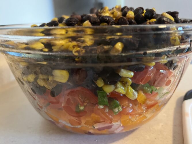 This delicious southwest bean salad can be made in under an hour and makes for a great side dish, dip for chips, or wrap filling. I love making this in the beginning of the week for a great make-ahead lunch or healthy side dish for dinner. It pairs great with grilled chicken, pulled pork, and beef tacos.